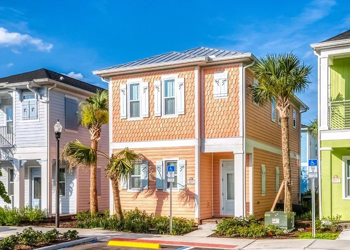 De 3-slaapkamer Tropical Oasis Cottage Near Disney With Private Hot Tub Margaritaville Resort Access - 3021La ligt in de wijk Celebration en biedt een bubbelbad, samen met een buitenzwembad. De villa biedt draadloos internet en bevindt zich binnen 2 km van het Disney's Animal Kingdom.